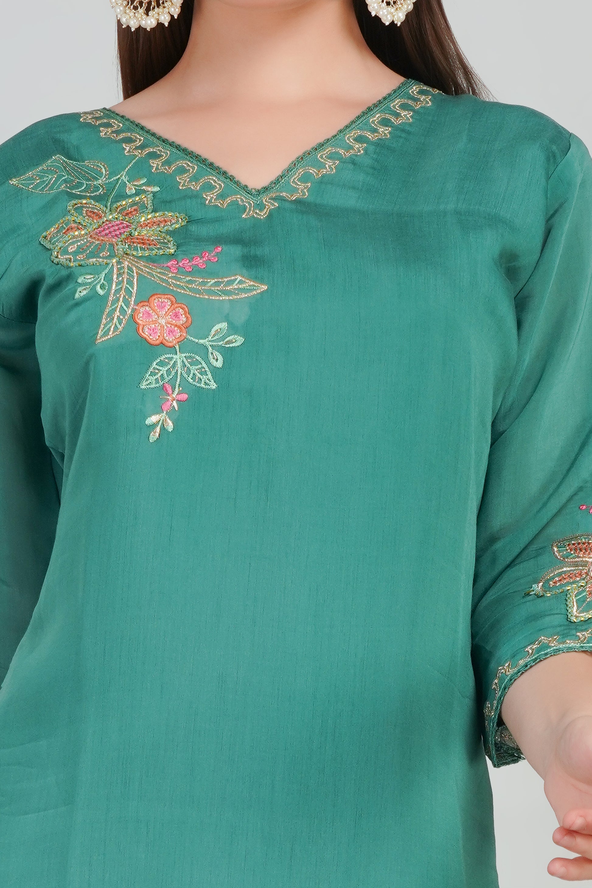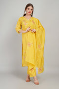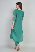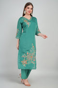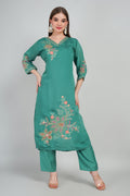 Green Women’s Mul Chanderi Kurti Set with Dupatta