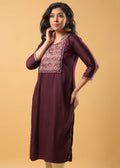 Stylish Maroon Rayon Kurti crafted from soft, breathable fabric. With its rich color and comfortable fit, it’s ideal for both casual and festive occasions, adding a touch of elegance to your wardrobe.