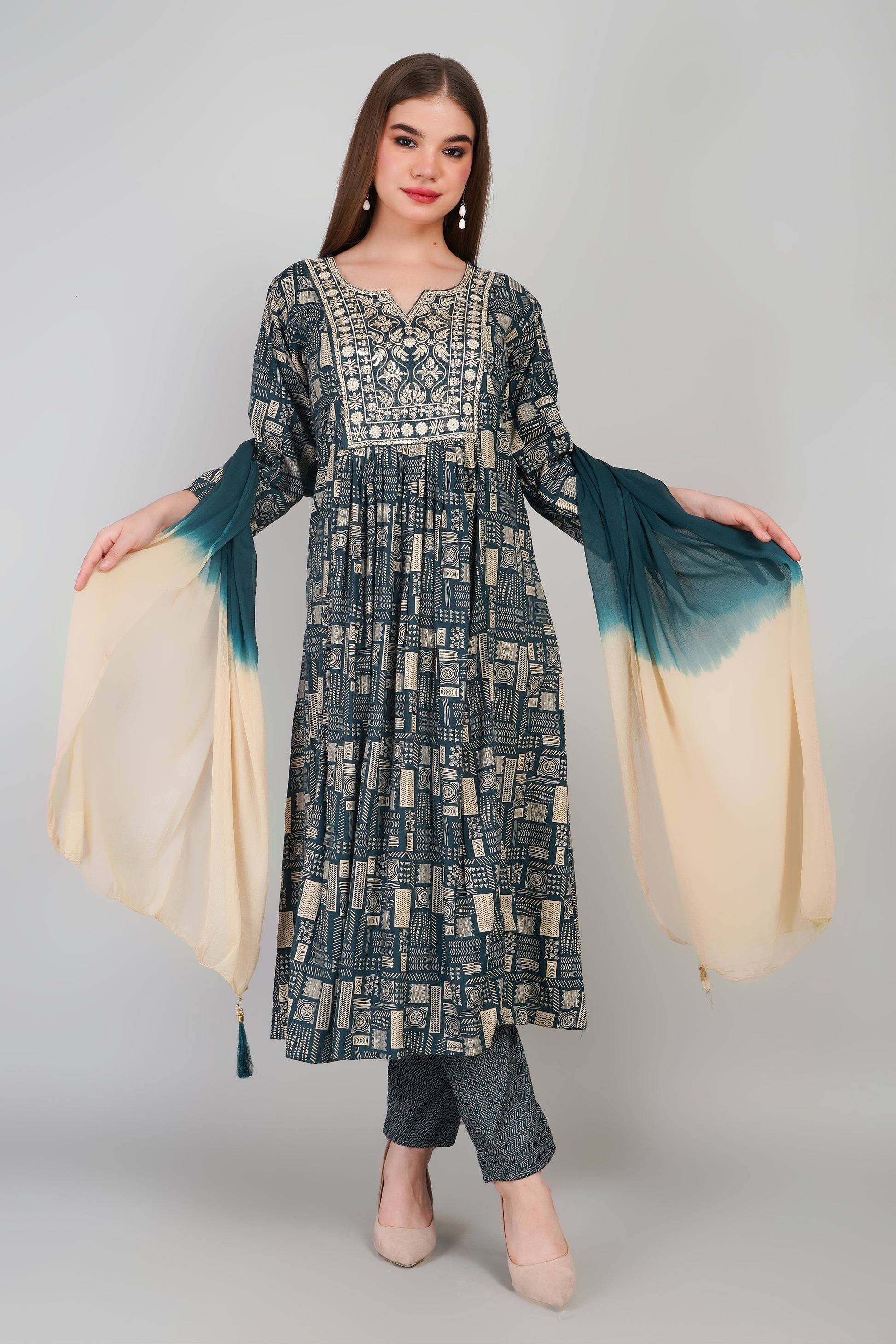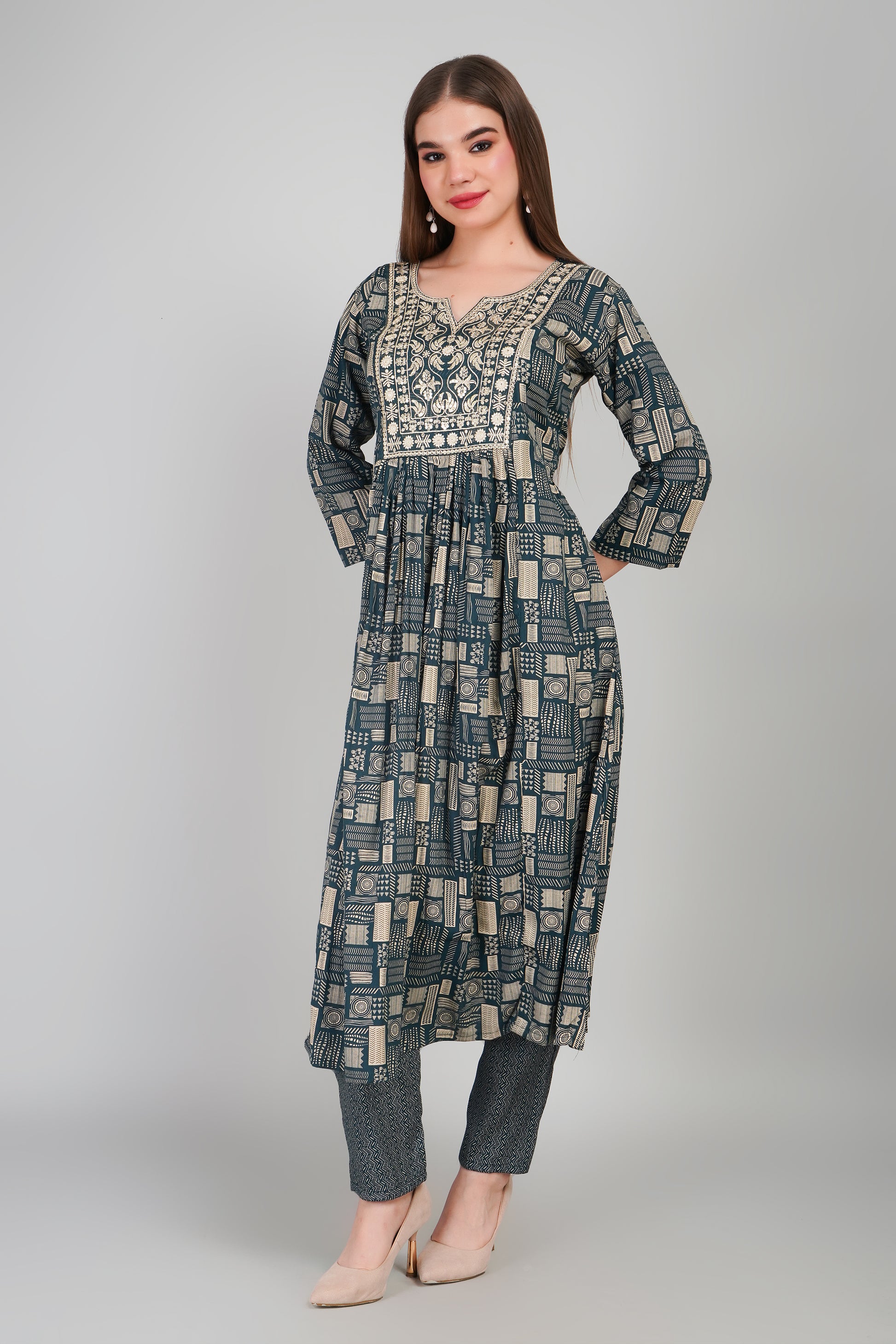 Elevate your ethnic wardrobe with this designer kurti set crafted from premium Cotton fabric, known for its smooth texture, breathability, and elegant fall. Perfect for festive occasions, parties, and casual gatherings, this set blends comfort with timeless style.